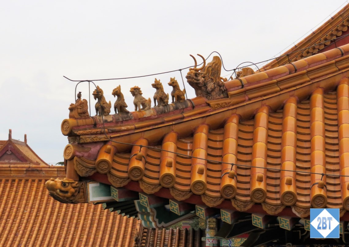 The corners of most of the roofs have a line of statuettes featuring a man riding a phoenix followed by an imperial dragon. The number of statuettes indicates how important the building is. The Hall of Supreme Harmony had 10, the only building permitted to have so many during imperial times.