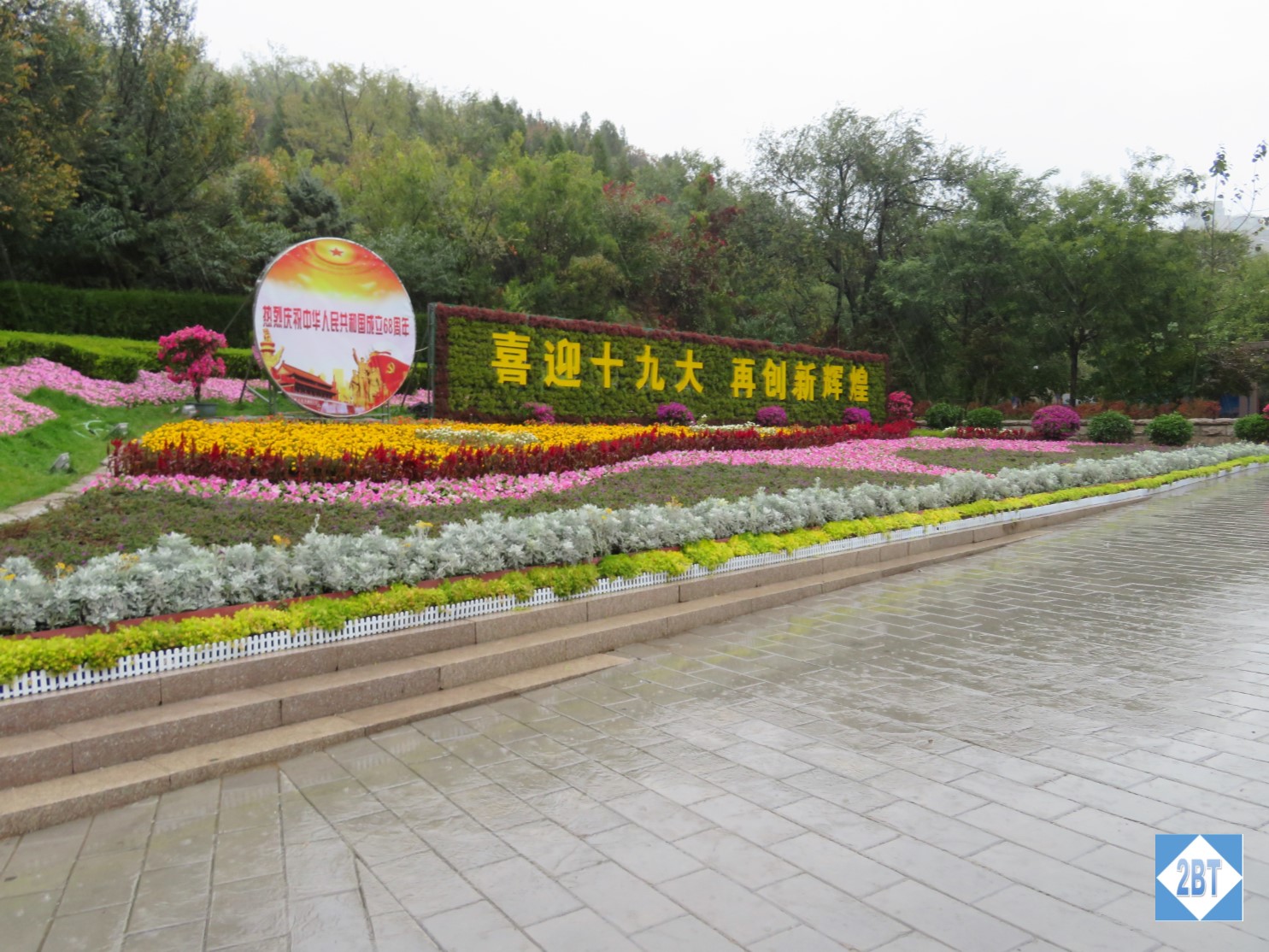 This display welcomes visitors. It’s along one side of the walkway up to the entrance.
